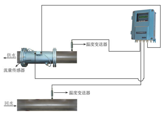 其次另外一種就是管段式超聲波熱量表,相對于上面的那種安裝要復(fù)雜一些,因為要切開管道把我們流量傳感器安裝上去,大家可以看圖。