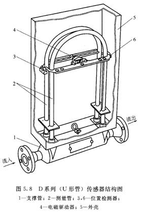 CMF的測量管既是介質流通管,又是敏感部件,支撐結構很重要。測量管固定在支撐結構上,作為振動系統(tǒng)的振動軸心,是系統(tǒng)振動特性的起始點。同時它又是隔離外來振動的一道重要屏障。在圖5.7~圖5.9所列舉的三種典型結構中,D系列和m-Point的支撐均是剛性很好的不銹鋼圓筒,而MFS-1000則是一個不銹鋼橋架( bridg),此橋架看似笨重,實際上很好地抑制了外來振動的干擾。