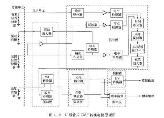轉換電路主要由驅動板、信號板、隔離板、頻率板和模擬板所組成。圖5.12所示為U形管式CMF轉換電路原理圖。