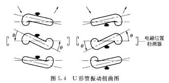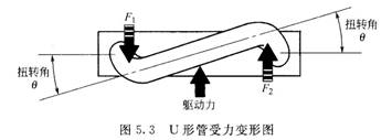 =常數(shù)??梢?,質量流量僅與時間間隔 Δt和幾何常數(shù)有關,與U形管驅動轉速ω無關,亦即與測量管的振動頻率無關。U形測量管受力變形和振動扭曲如圖5.3、圖5.4所示。