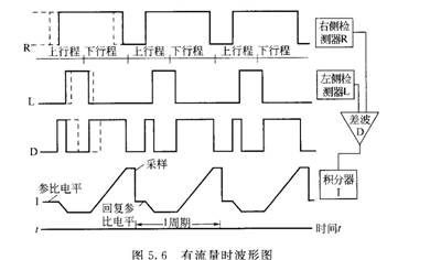 在圖5.5和圖5.6中,R是來自右位置檢測器經過初步處理的信號波形;L是來自左位置檢測器經初步處理后的信號波形;D是R和L反相比較后的差波信號波形; I是線性積分后的波形 。