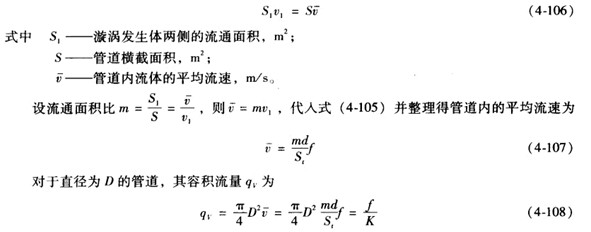 注意:式(4一108)推導的前提是渦街穩定,即滿足h/l=0.281,它適合于任何形狀的漩渦發生體。
