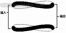此科氏力作用在丈量管上,就產(chǎn)生了如圖5所示的結(jié)果,即在中間點(diǎn)上產(chǎn)生一對(duì)力,引起丈量管稍微的扭曲或變形。而實(shí)際上在振蕩運(yùn)動(dòng)時(shí)是兩根S管同時(shí)所受的振蕩,其運(yùn)動(dòng)方向相反,受力相等,如圖6所示。