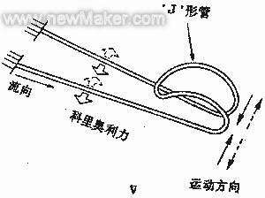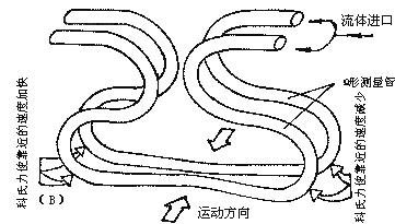 圖1 科里奧利力的形成 圖2 早期科氏力質(zhì)量流量計(jì)