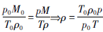 式中:p0、V0、T0、ρ0、M0為標準狀態下氣體的壓力、體積、溫度、密度和質量;p、V、T、ρ、M為工況狀態下氣體的壓力、體積、溫度、密度和質量。