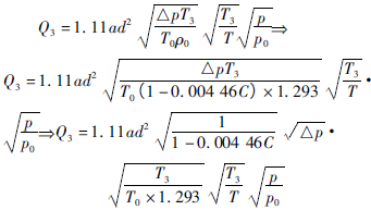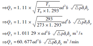 設:p3、Q3、T3為常溫狀態(一個標準大氣壓,20℃)下的壓力、體積、溫度;則:p3=p0=101325Pa;T3=273+20=293K。