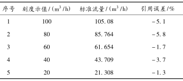 (1)把轉子流量計按玻璃管上的刻度示值做一遍檢定,得到如表1所示數據,從中可以看出刻度示值為“100”和“80”時的引用誤差非常大,已經無法正常使用(JJG257—2007《浮子流量計檢定規程》中規定引用誤差最大為5%)。