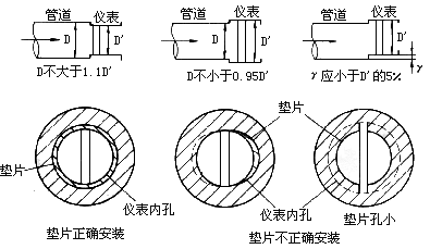 3) 密封墊不能凸入管道內,其內徑可比傳感器內徑大1~2mm。