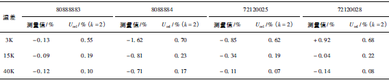 表3-2 累積體積(質(zhì)量法)相對示值誤差測量結(jié)果及其擴展不確定度表