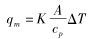 熱消散效應(基于金氏定律)侵入式質量流量計的工作原理是將兩個溫度傳感器(一般為鉑熱電阻)分別置于管道的流體中,由其中一個鉑電阻測得流體本身的溫度T,另一個鉑電阻經一定功率的電加熱,其溫度TV高于T,當流體靜止時其溫度最高,伴隨著管道中流體流量的增加,流體流動帶走更多熱量使TV降低,即可通過溫度差求取流量值。基于金氏定律的熱絲熱散失率為: