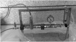 熱式質量流量計在出廠前均經過出廠標定,以確保其性能滿足要求。此外,為了驗證流量計在主泵第三級密封泄漏流量測量場合的適用性,搭建了模擬試驗裝置如圖2所示。試驗裝置由玻璃轉子流量計、壓力表、Swagelok計量閥和管道組成。流量計探頭安裝在壓力表和閥門之間,測量信號通過電纜送至流量計的數據處理單元,并最終在顯示儀上進行顯示。計量閥用于調節試驗裝置的流量,玻璃轉子流量計測得的結果作為熱式質量流量計測量結果的參考,壓力表用于試驗裝置試驗過程壓力的測量。