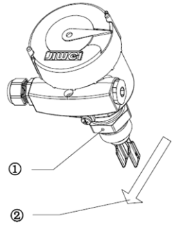 安裝音叉液位開關時,應使叉體面和液體升降或流動保持方向一致,可以避免掛料或由于介質對叉體的阻力而產生的測量誤差,如圖1(a)(b)所示。