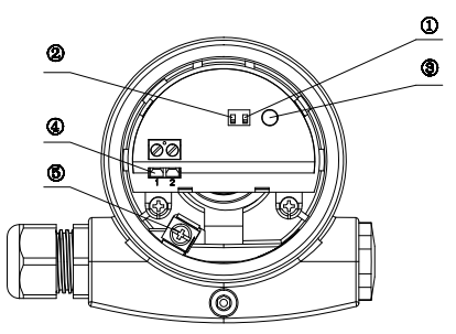 ①密度開關 ② 高低位模式 ③ 指示燈 ④ 接線端子 ⑤ 接地端子