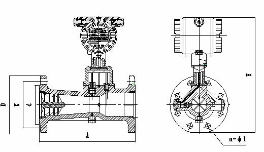 流量計(jì)的外形尺寸如圖3所示,圖中未注尺寸列于表1中,流量計(jì)采用法蘭連接方式,法蘭尺寸執(zhí)行GB/T9112~9113-2000標(biāo)準(zhǔn)。